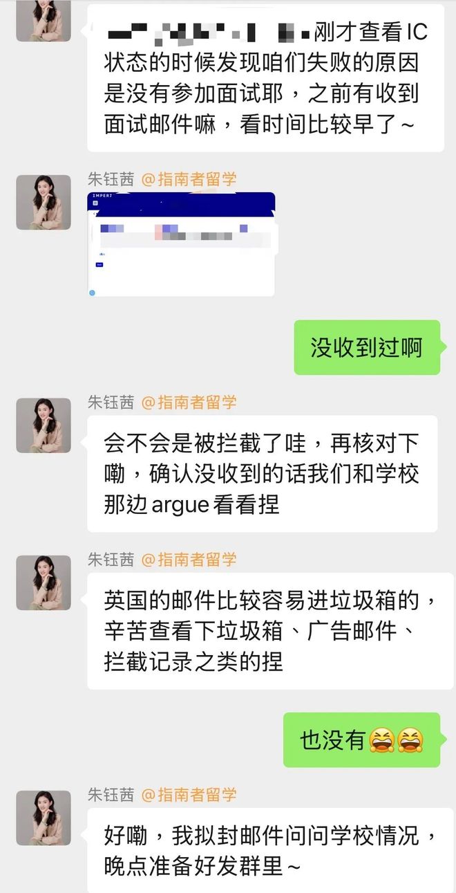 申请帝国理工学院商业分析硕士时365体育亚洲唯一登录入口,我突然收到拒信,理由是 “未出席面试”—— 可我压根没收到面试邮件!还好朱老师定期检查申请状态时及时发现,立刻帮我拟了邮件和学校 argue。很快,学校重新发送了面试邀请,化解了这场因系统 bug 导致的危机。
